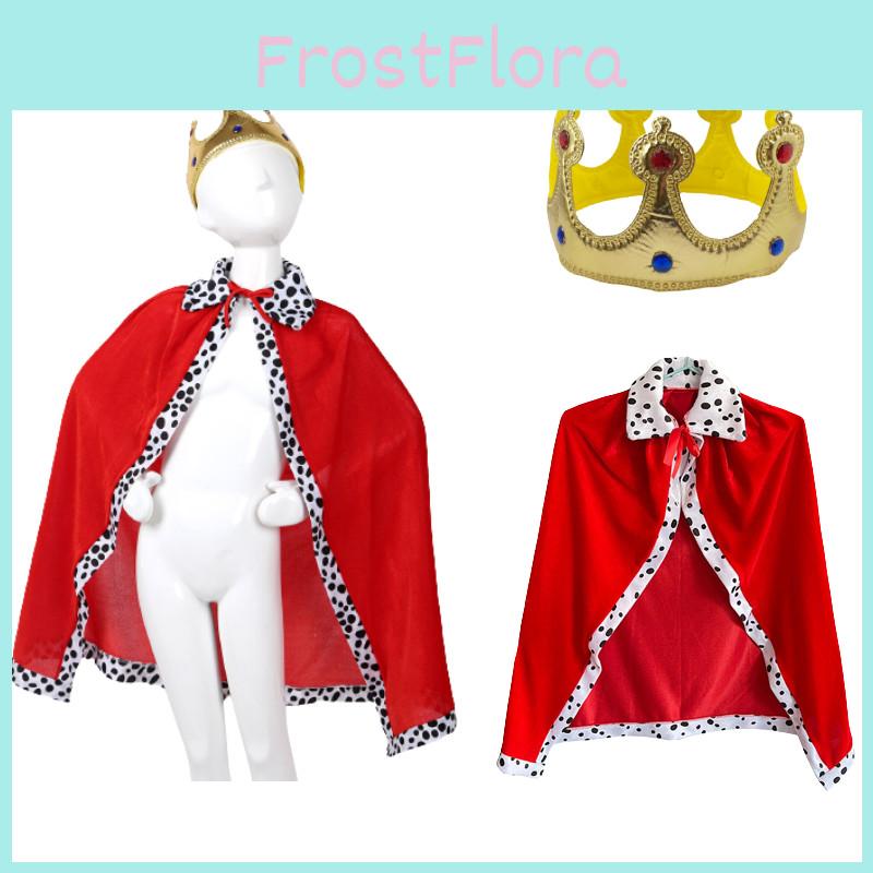Perfect King Fancy Dress: The king capes for kids with black dots white trim, the golden fabric crown adorned with red and blue beads, is dazzling in appearance and will make your child look more stunning.The classic design will make your child the center of attention at the kids fancy dress party.