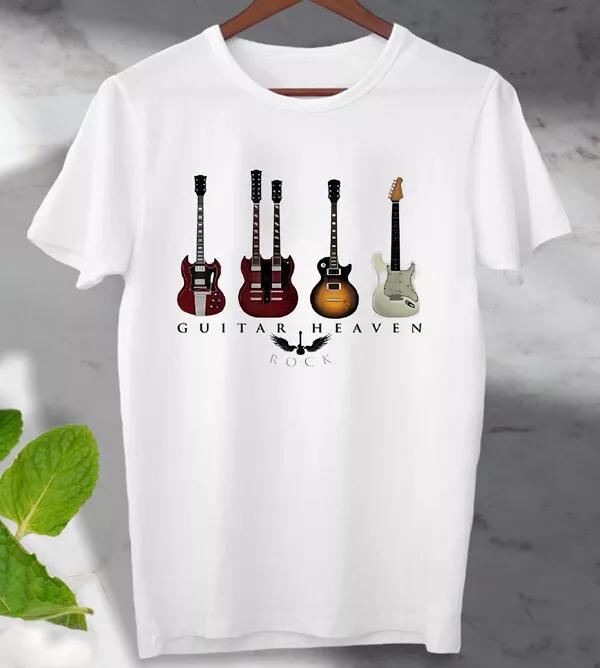 Guitar Heaven Rock 100% Cotton T-shirt Mens Tees Top Poster Men's Ladies Top