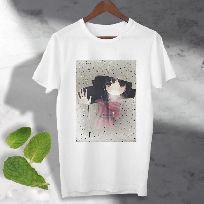 Anime Girl Manga 100% Cotton T-shirt Mens Tees Top Raining Windows ideal gift Unisex Tee Top
