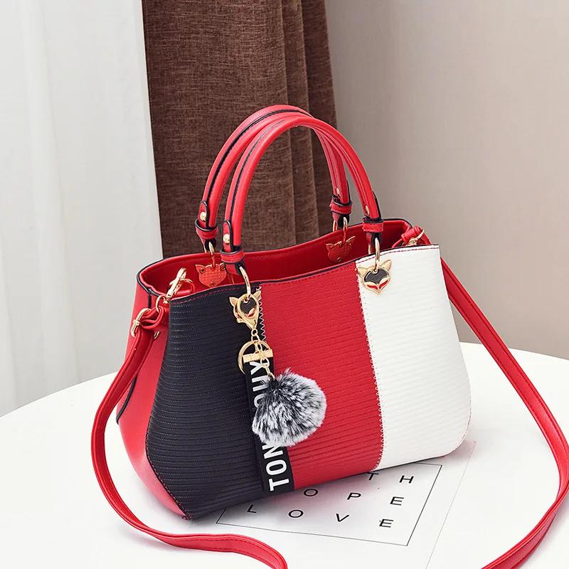 Women's bag New Fashi Hair Ball Pendant Hit Color Ladies Handbag Trend All-match Retro PU Messenger Bag Shoulder Bag Wallet