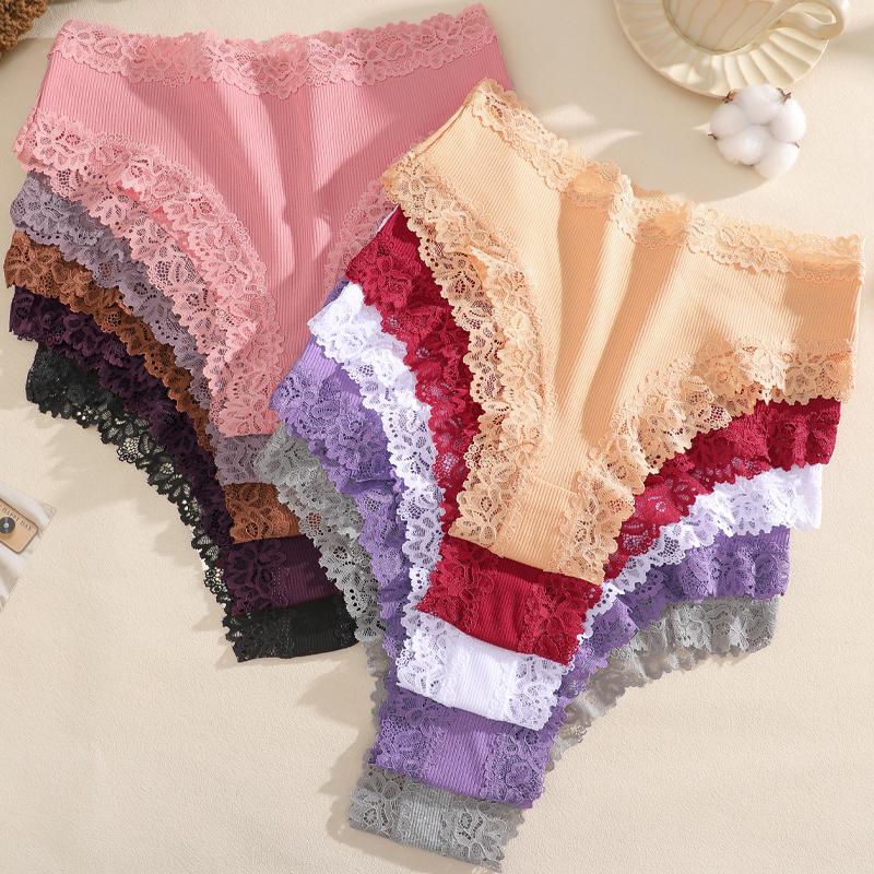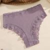 Women‘s Cotton Fabric Panties Sexy Lace Trim High Waist Underwear Solid Color Breathable Bikini Briefs Female Sexy Lingerie New