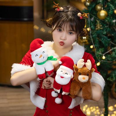 Cute Christmas Santa Claus Plush Doll Toy With Wrist Paddle Bracelet For Children 25cm Height