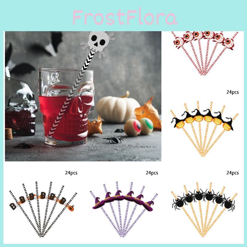 Halloween Spider And Pumpkin Straw Decorations Set Of 24pcs