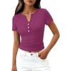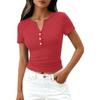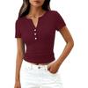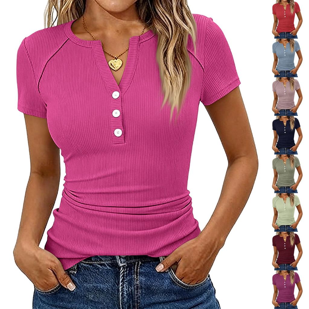 Dámské módní ležérní barevné nové tričko s krátkým rukávem, ozdobným knoflíkem a výstřihem do V