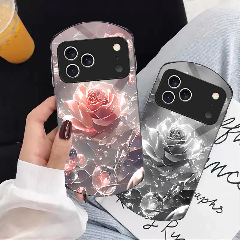 Ice crystal-colored roses For iPhone 17 16 15 14 Pro 13 Plus 12 mini 11 Pro Max XR X S 7 8 Elliptical Tempered Glass Phone Case