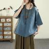 Literary Retro Embroidered Cotton and Linen Summer New Loose Round Neck Casual Half-sleeved Top
