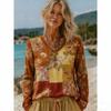 Elegantní zvonové rukávy s plisovanými manžetami: Rukávy košile jsou složitě nařasené a jemně rozšířené do tvaru lucernových rukávů inspirovaných retro stylem.. Tento jedinečný design rukávu dodává nádech vintage šarmu a zároveň umožňuje volnost pohybu.. Jak pohybujete rukama a paží, rukávy vytvářejí uvolněnou siluetu připomínající bezstarostný styl potulného umělce.. Tato funkce nejen zvyšuje vizuální zajímavost, ale také pozvedá celkovou estetickou přitažlivost oděvů.
