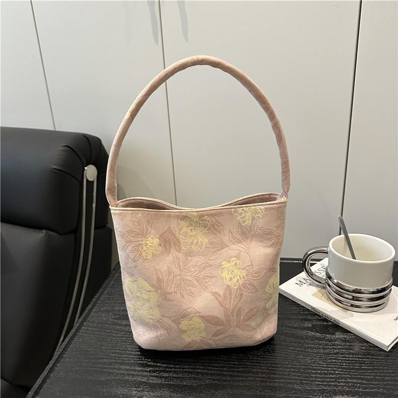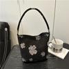 Casual Print Women Bucket Shoulder Bags Ctrasting Color Portable Ladies Shopping Bag Simple Commuter Female Underarm Handbag