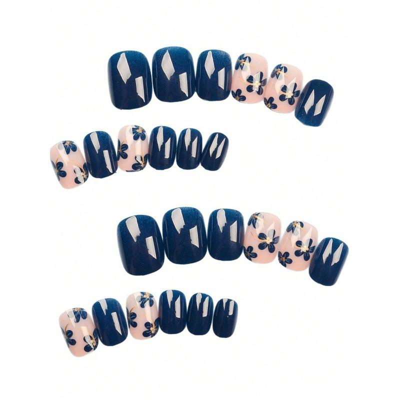 24 ks Jarní a letní modré květinové čtvercové nálepky na nehty, Zdobené vzorem modrých květin, Vhodné pro dámskou dekoraci nehtového umění | Květinový design nehtů