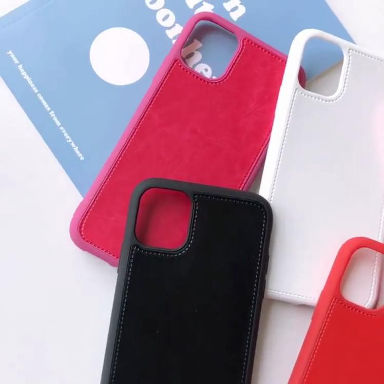 Smooth Faux Leather Stitched Edge Phone Case Shockproof Protective Cover for iPhone
