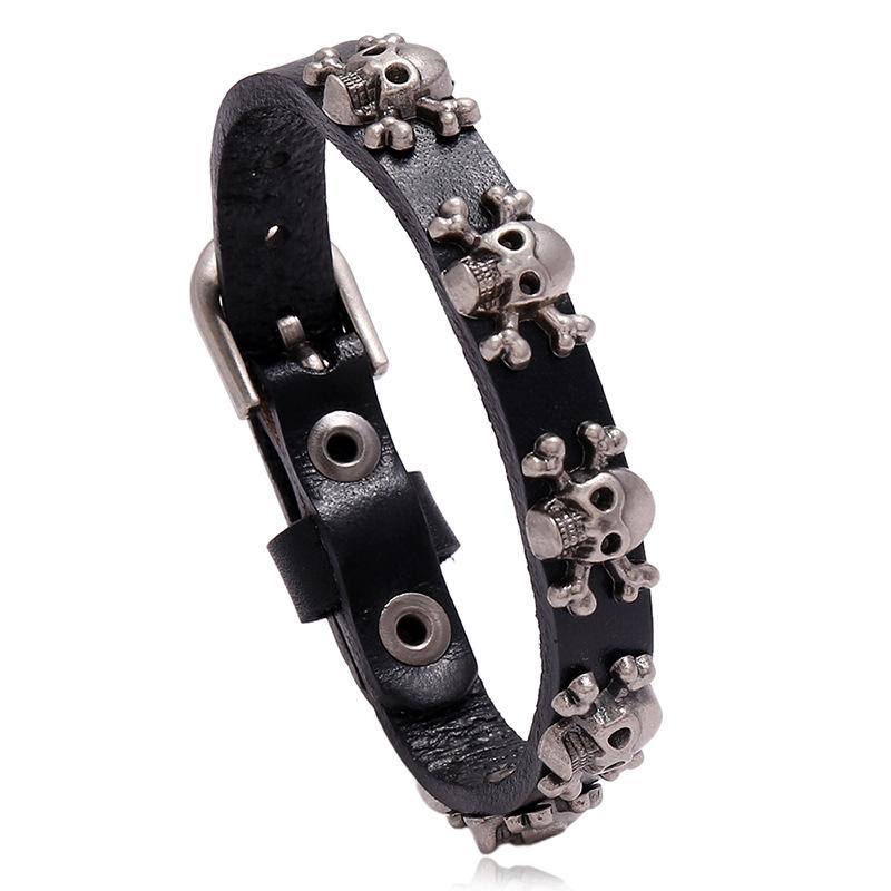 European and American New Style Jewelry, Popular on the Internet, Skull Punk Style Leather Bracelet, Simple and Adjustable Men's Accessory