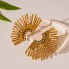 Women's Vintage Fan Leaf Shape Earrings Stud Temperament Gold Color Big Earrings Personality Simple Party Jewelry Gift