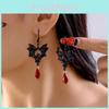 Gothic Vampire Bat Punk Earrings for Women Man Fashion Witch Jewelry Accessories Red Crystal Vintage Bat Pendant Ear Hooks