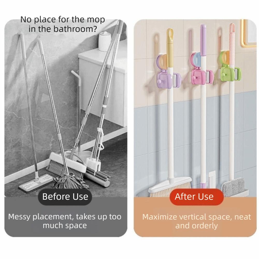 Dopamine Suction Cup Mop Holder Punch Free Wall mounted Wall Mounted Mop Rack with Hook Space Saving Broom Hanger Shower Room