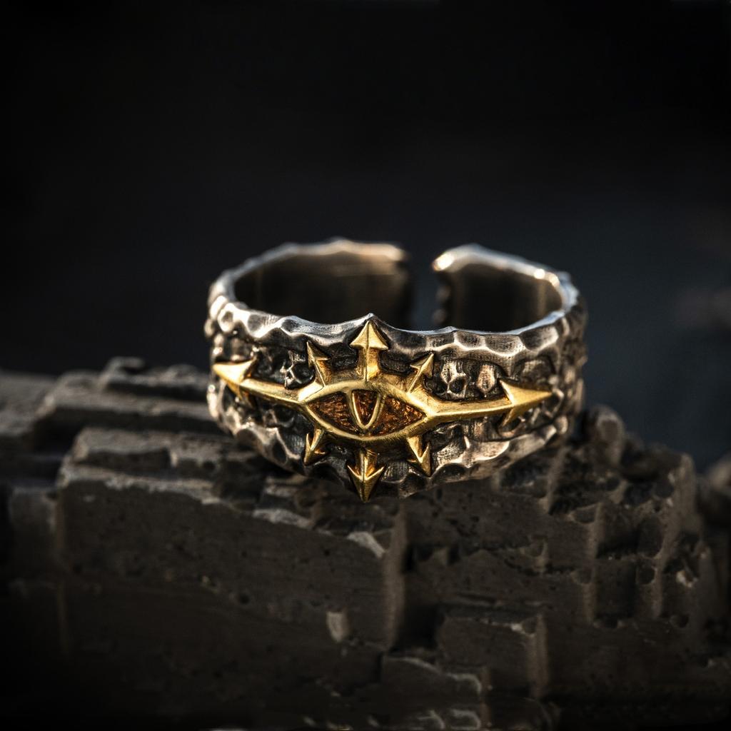 Retro The 13th Black Crusade Adjustable Open Ring For Men Punk Gothic Edgy Copper Jewelry Warhammer 40K Accessories Gift for Him