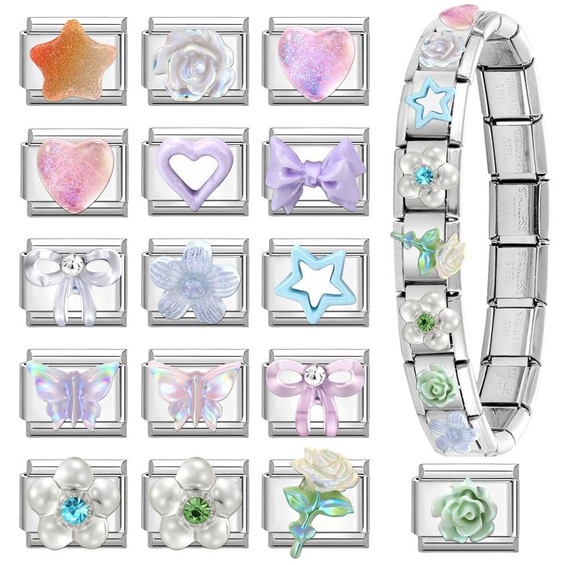 Fashion Heart Bow Knot Butterfly Star Rose Flowers Italian Charm Links Fit 9mm Stainless Steel Bracelet Women DIY Making Gift