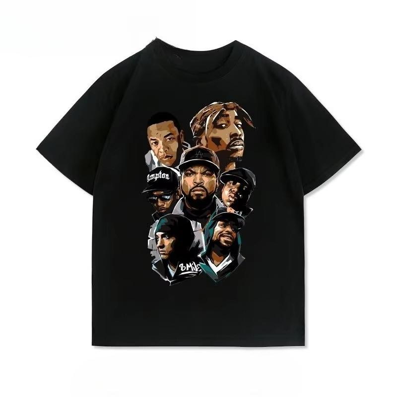 West Coast Rap Eminem 2PAC Dog Brother Rock Hip Hop Cotton Short Sleeve TShirt Mens and Womens Casual Cotton Top