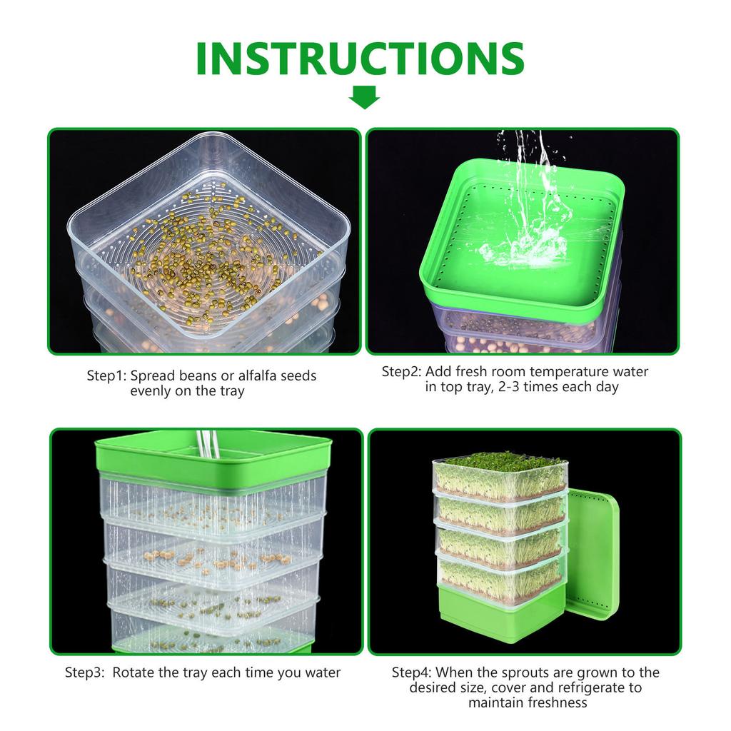 4patrový skládací klíčící sada Plastová úspora místa Víceúčelová čtvercová miska na pěstování mikrozeleniny pro klíčky fazolí