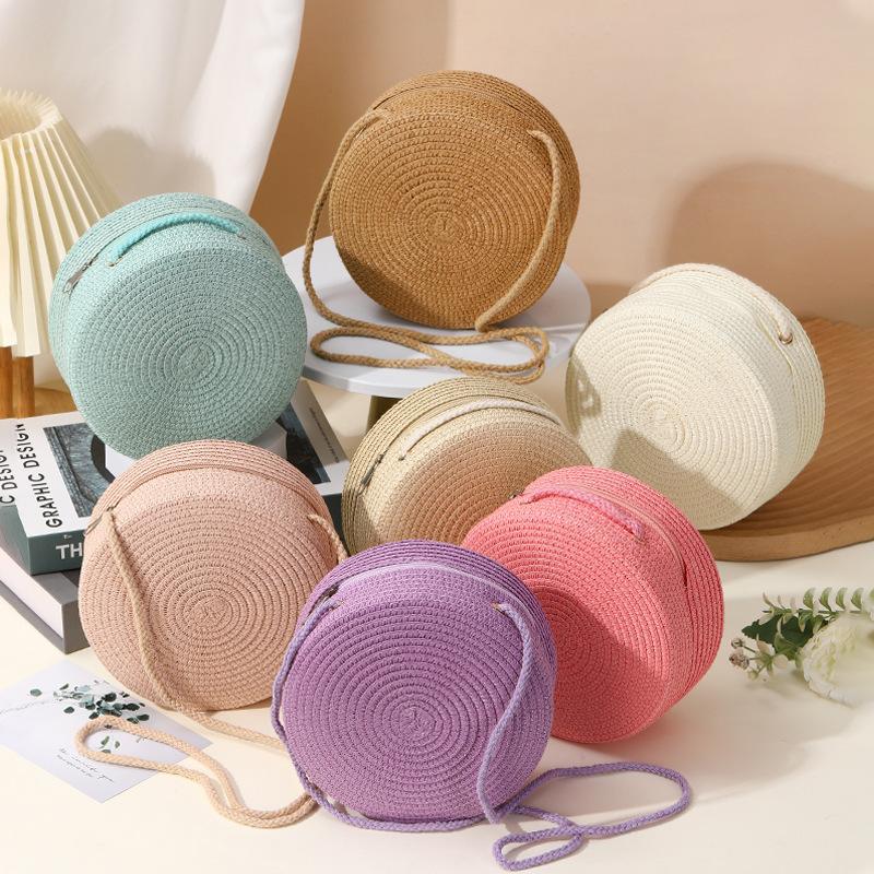 Straw bag seaside woven bag women's new light luxury straw woven round bag children's messenger bag beach vacation