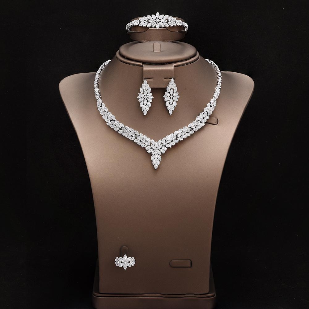 Sada svatebních šperků pozlacená bílým zlatem Svatební party Náhrdelník Šperky Sady Módní Dámské Doplňky
