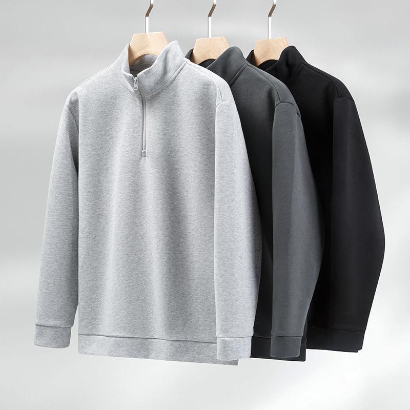Men's Half Zip Mock Neck Sweatshirt Light Gray Long Sleeve Pullover