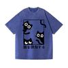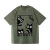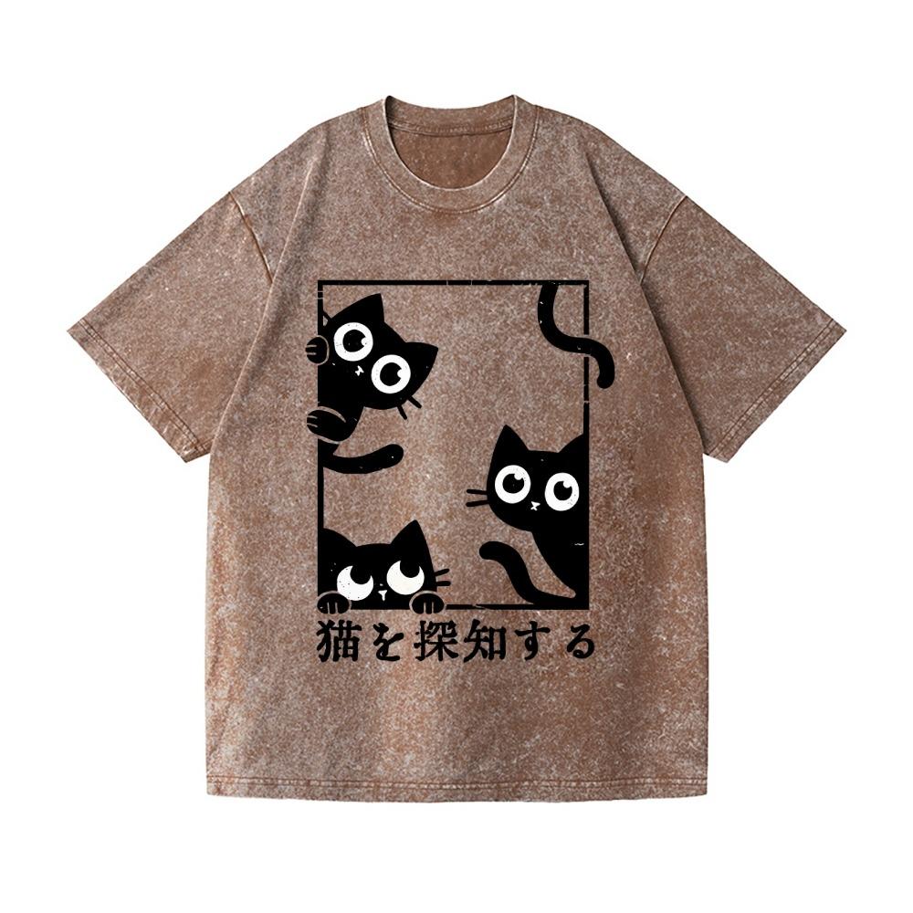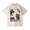 Fashion Black Cat Vintage Wash Japanese Design T-Shirt Harajuku Basic Top Casual Cotton Short Sleeve Dropped Shoulder