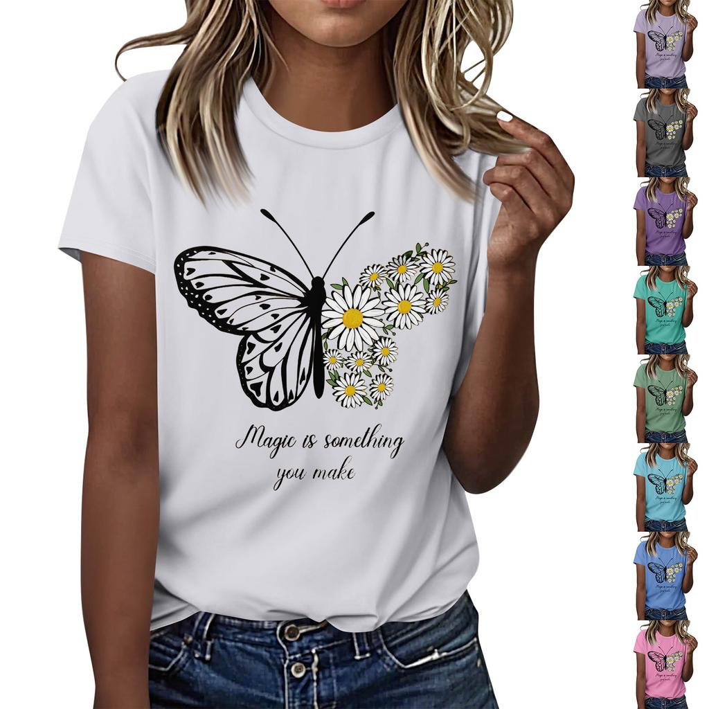 Dámské ležérní tištěné tričko s kulatým výstřihem, svetr s krátkým rukávem