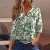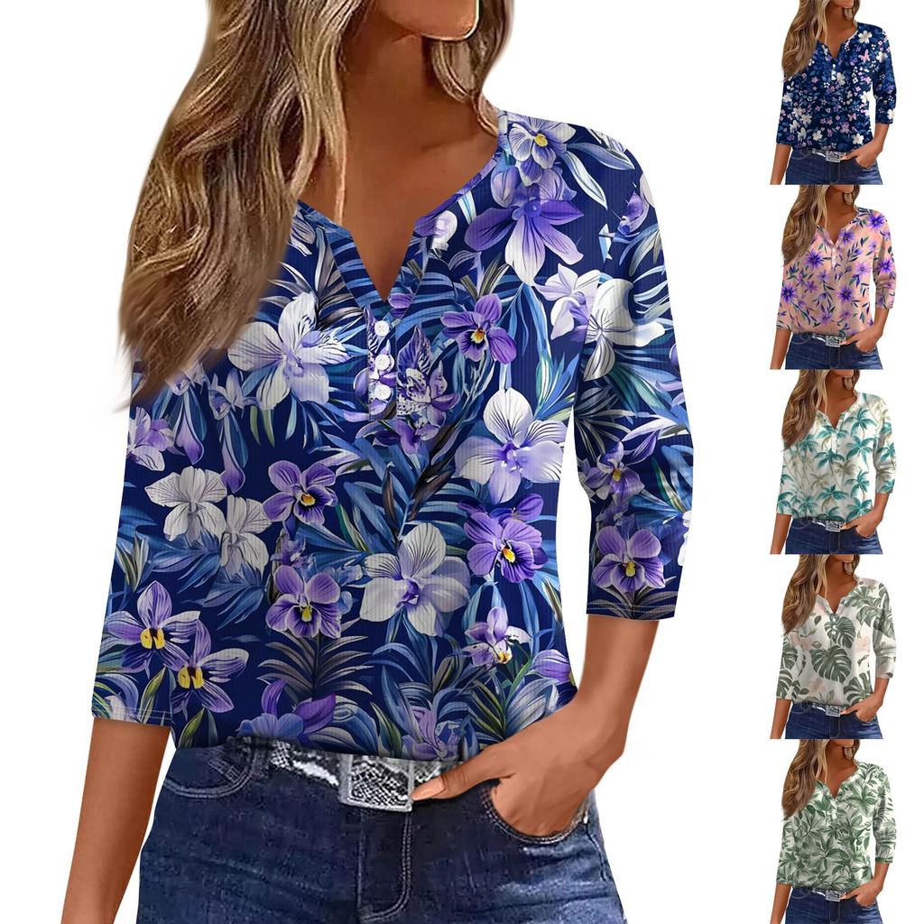 Dámské tričko tričko potisk knoflík 3/4 rukáv tunika denní víkendová móda základní výstřih do V běžný top