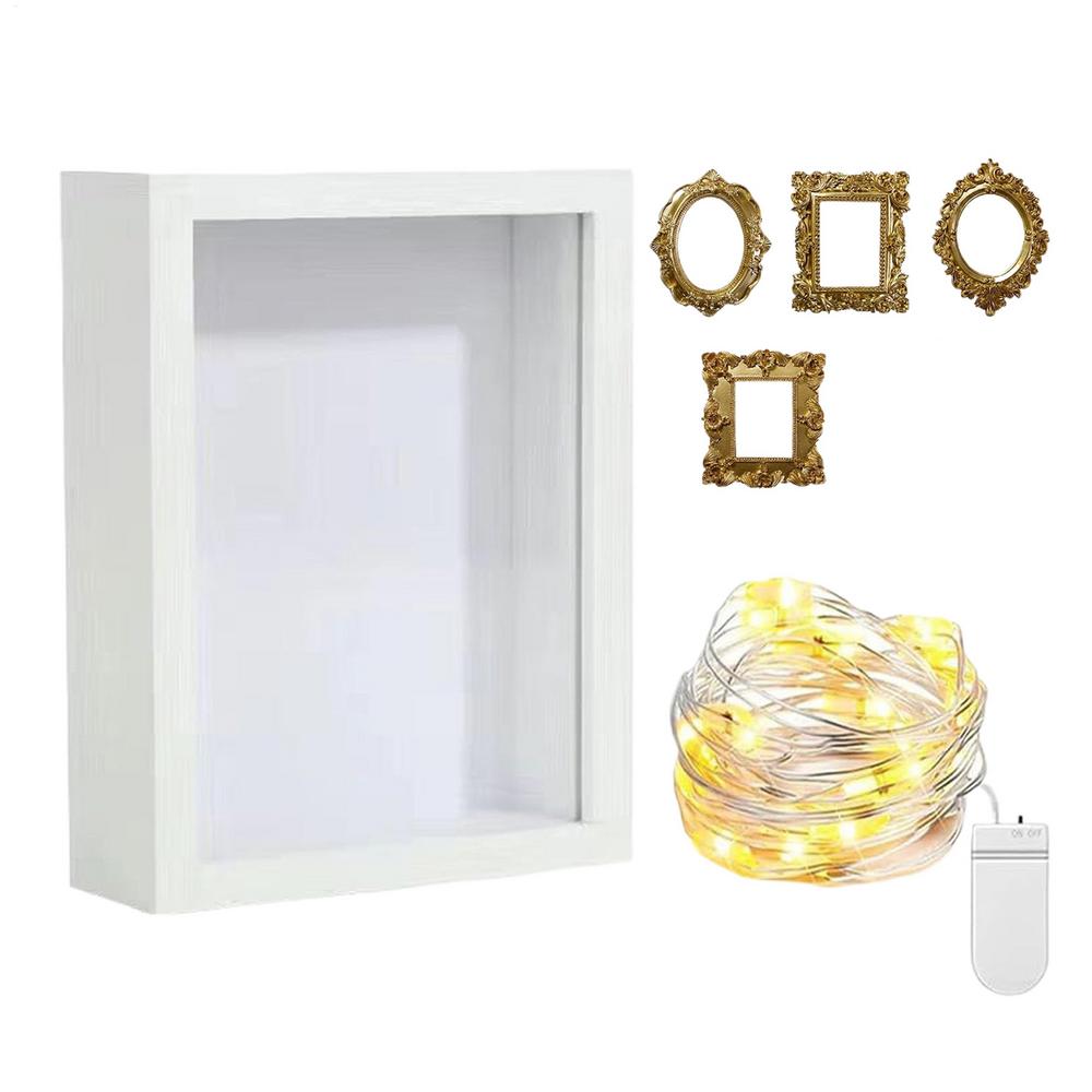 Memory Shadow Box Display Mini Golden Frame for Weddings Birthdays Housewarmings, Keepsake Gift, Home Ornament