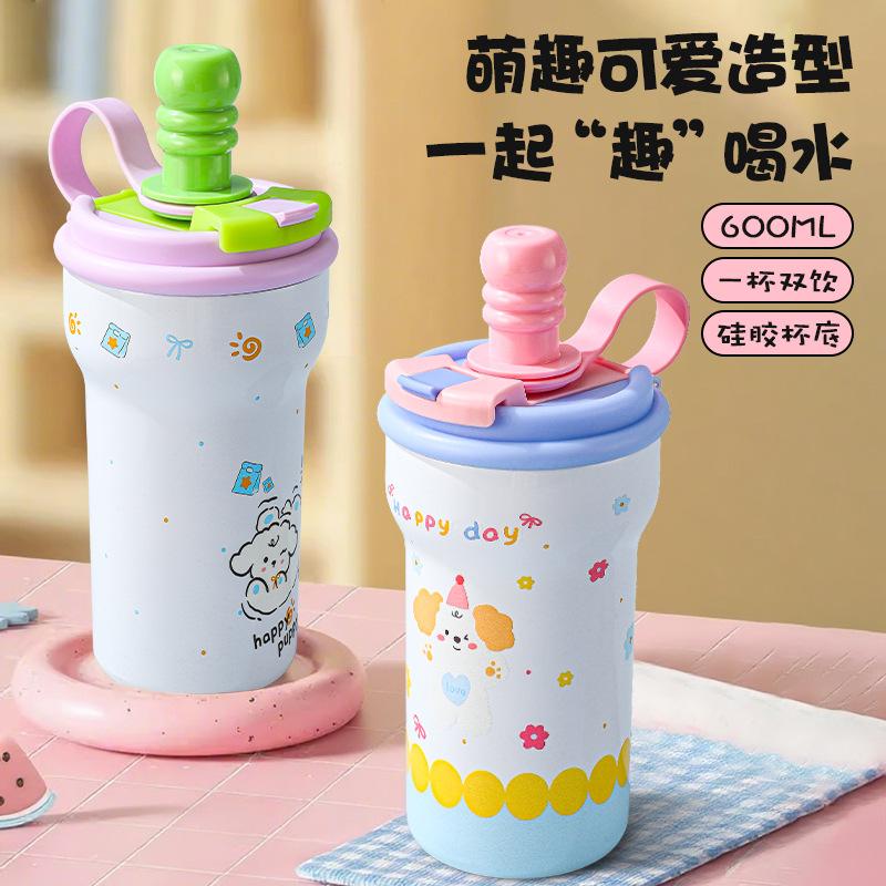 Large-capacity office desktop thermal mug, women's straw cup, cold-retaining, high-value coffee cup 600ml