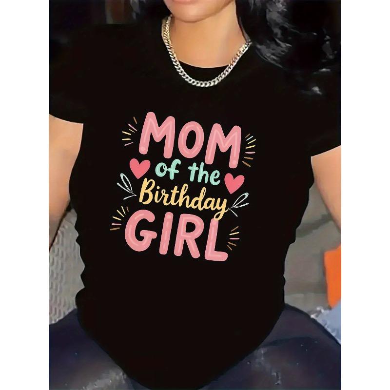 Women's Mom of The Birthday T-Shirt Heart Accent Print Short Sleeve Casual Party Wear Top