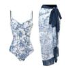 Women's Sexy One-Piece With Printed Swimsuit Long Skirt Set