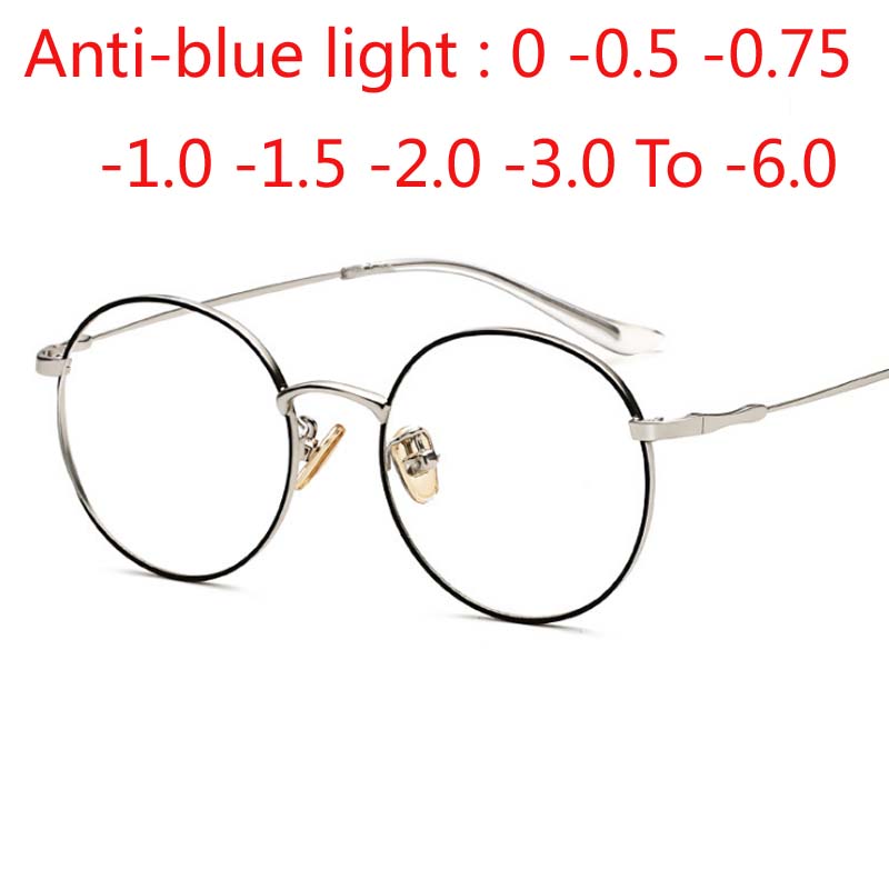 Women Men Round Finished Myopia Eyeglasses Anti Blue Light Short Sight Spectacles Diopter -0.5 -0.75 -1.0 -1.25 -1.5 -2.0 To -8.0