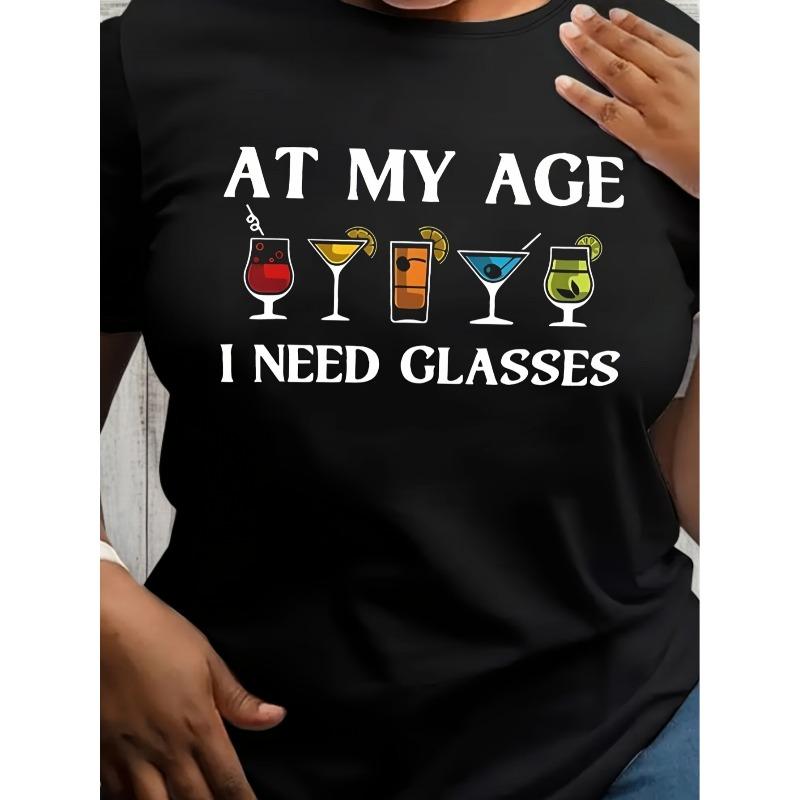 Plus Size Women's T-Shirt "At my age I need glasses" Funny Print Crew Neck Short Sleeve Casual Spring Summer Top