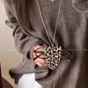Vintage Style Leopard Print Leather Neck Hanging Sun Glasses Clip On Eyeglasses Chain Storage Necklace Women's Hanging Rope Sweater Chain