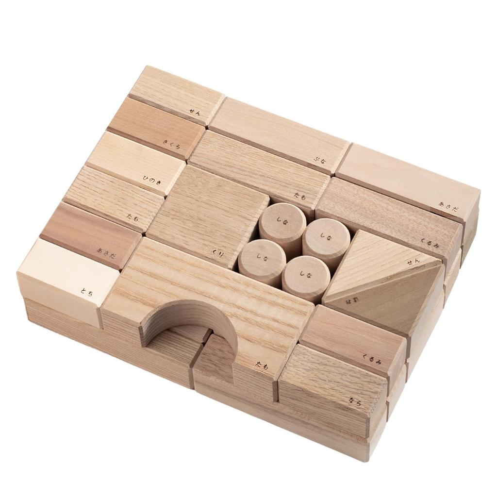 Oak Village Wooden Building for suitable for ages 3 months and made from 12 types of wood including Japanese and educational wooden building blocks