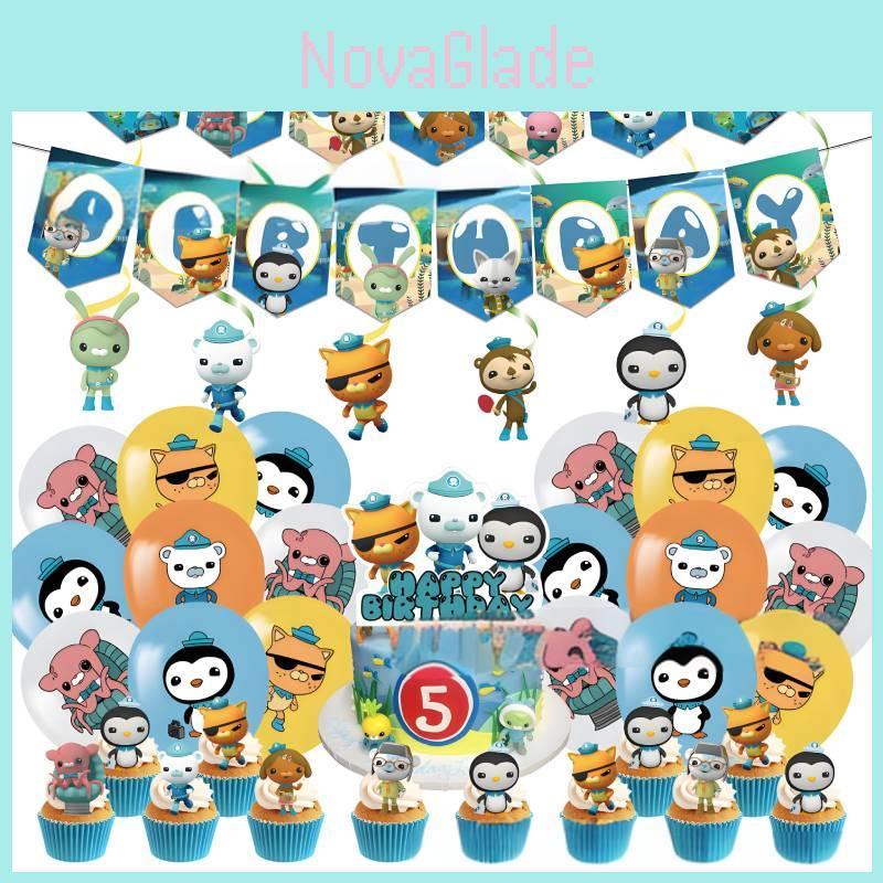 Barevná sada dekorací na narozeninovou oslavu Octonauts se spirálovými bannery a balónky