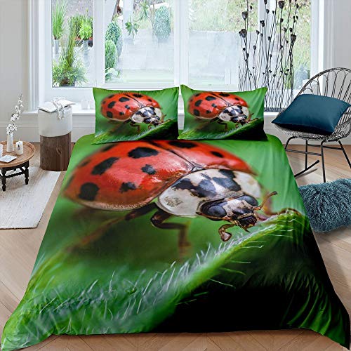 Comforter Ladybug Comforter Set Ladybug On Green Leaf Wild Wildlife Theme Microfiber Bedding Set 3Pcs For Kids Teens