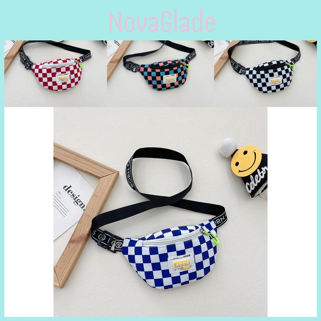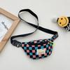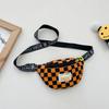 Stylish Children's Checkered Pattern Sling Bag Durable Canvas Crossbody Backpack With Large Capacity For Snacks