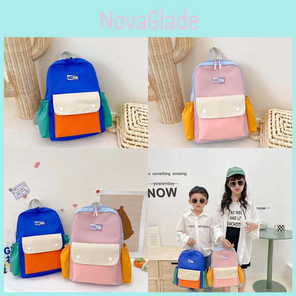 Stylish Dual Color Backpack For Kids Large Capacity Durable Nylon Canvas Preschool Bag