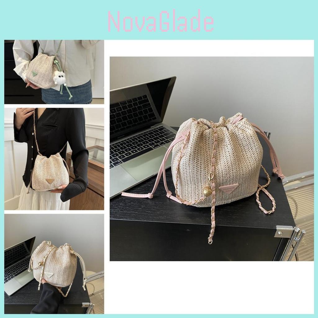 Mini Cute Womens Bucket Bag Trendy Woven Floral Design Phone Holder In Soft Polyester