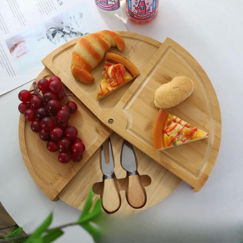 Bamboo Round Rotatable Cheese Board Set