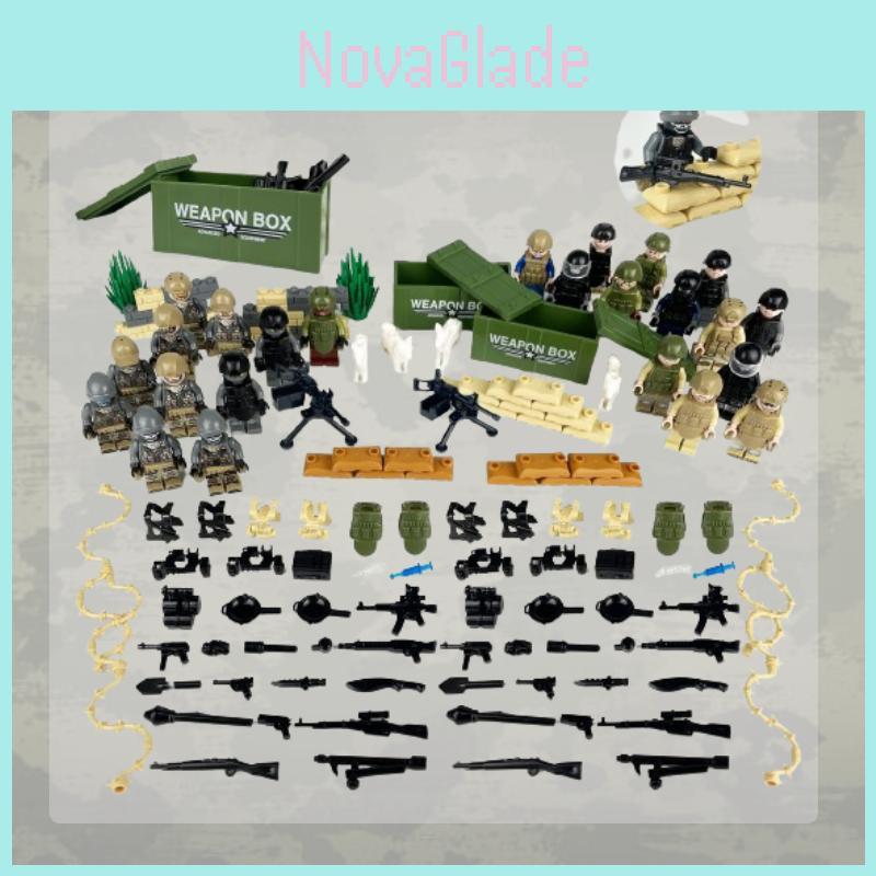 Moc Military Soldiers Building Blocks Figurines Set Plastic Toy With Weapon Accessories And Equipment Bag