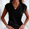 EastRogue Women's Fashion Casual Summer Solid Color Print Short Sleeve V-Neck Blouses & Shirts