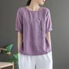 Floral Embroidery Cotton and Linen Round-neck Short-sleeved T-shirt for Women, Summer New Style Top for Women
