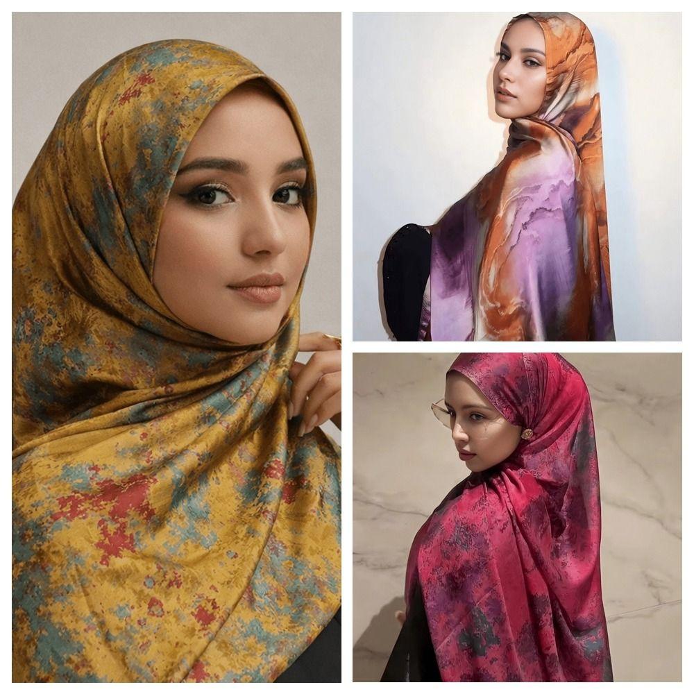 Breathable Satin Scarf Ethnic Long Scarf Elegant Headscarf Party