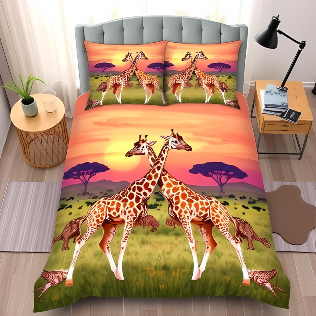 Comforter With Stylized Giraffe Design Warm Colors Toned Borders For Exotic Charm Suitable Children Kids And Adults Soft