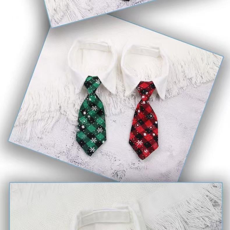 Pet Christmas Tie Bow Tie Striped Checked Tie Collar Scarf Fake Neck Drool Towel Bow