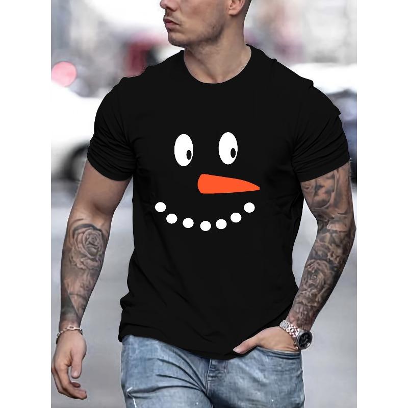 European Size Men's Snowman Pattern Casual Round Neck Short T-Shirt for Spring, Summer and Autumn