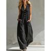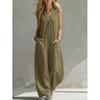 Dámský neformální overal bez rukávů s V-výstřihem, volným střihem a dvěma kapsami